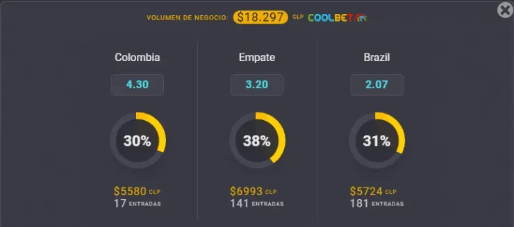 Para el OSO de Coolbet, el favorito para ganar en este compromiso de las Eliminatorias Sudamericanas al Mundial de Qatar 2022 es Brasil, que paga 2,07 veces lo que apuestes, por sobre los 4,30 que paga Colombia si crees que triunfan esta noche. Ahora, el empate entre ambos paga 3,20 veces lo que juegues.