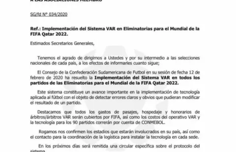 Además, el escrito informa que FIFA se hará cargo de cubrir los gastos de los árbitros que estén encargados de usar la tecnología, mientras que la implementación y los gastos operativos del VAR serán cubiertos por la Conmebol.