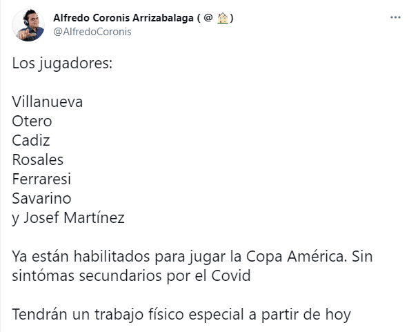 El entrenador José Peseiro recibió una buena noticia pues recuperó a todos los contagios de Coronavirus que permanecían en la concentración luego que dieran negativo en la última ronda de exámenes PCR, se hicieran estudios médicos que descartaran cualquier complicación y que empezaran a entrenar este martes.