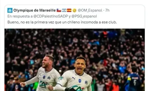 Si bien no hubo explicación alguna, otro equipo francés entró en la polémica, por sus redes sociales: el Olympique de Marsella donde juega Alexis Sánchez.