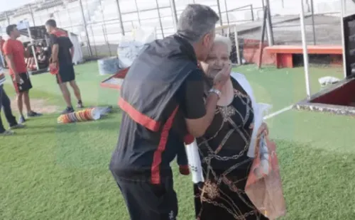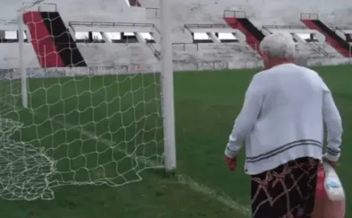 Paula Aranda, de 95 años, estuvo en la previa del encuentro yallí bendijo los arcos, las manos y los botines de jugadores. También al técnico Mario Sciacqua.