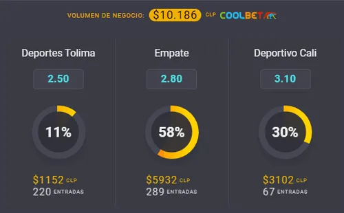 El OSO de Coolbet te cuenta que el favorito para la revancha de la gran final del Clausura de Colombia es Deportes Tolima, que paga 2,50 veces lo que juegues, por sobre los 3,10 que paga Deportivo Cali de Rafael Dudamel, si ellos vencen esta noche. Ahora, si crees que a los 90 minutos termina en empate, paga 2,80 veces lo que apuestes.