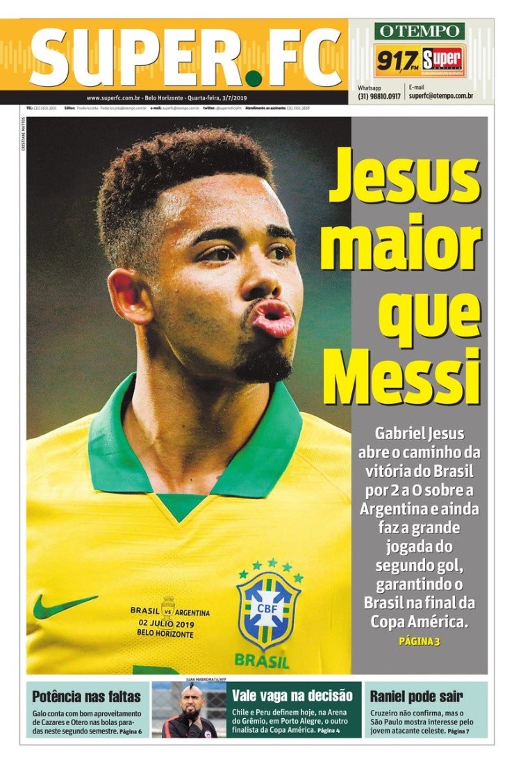 En cambio, la prensa brasileña aprovechó de saldar cuentas, especialmente Lance; que llevó una portada similar a la de Olé: “El Papa es argentino, pero Jesús es brasileño”, sentencia. “Jesús maior que Messi”, agrega Super.FC.