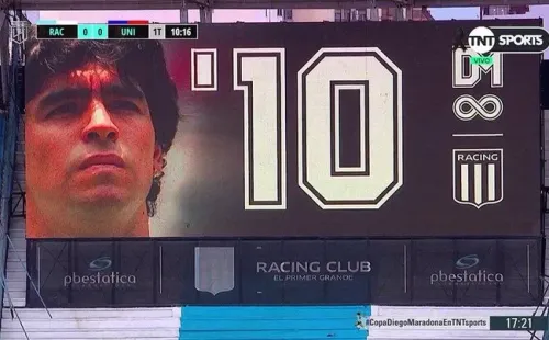 Racing de Avellaneda y Unión de Santa Fe disputan el primer encuentro después de la muerte de Diego Armando Maradona. El Pelusa falleció el miércoles 25 de noviembre por unparo cardiorrespiratorio y los partidos programados para ese día en el fútbol argentino fueron postergados por luto nacional.