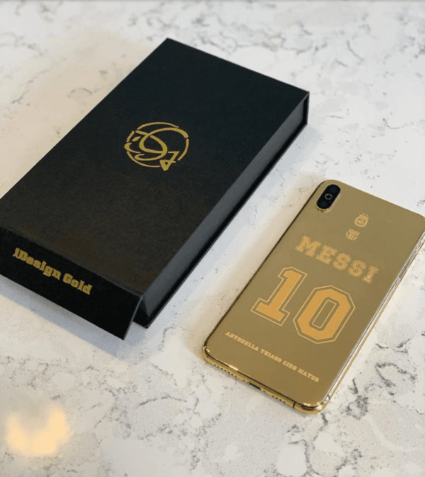 El Iphone de Lionel Messi fue bañado en oro de 24 kilates y en el dorsal tiene el logo del Barcelona y los nombres de su cónyuge e hijos.