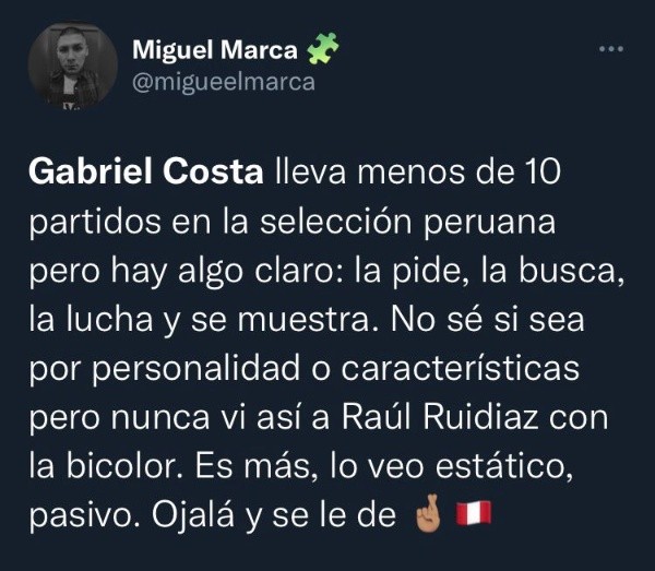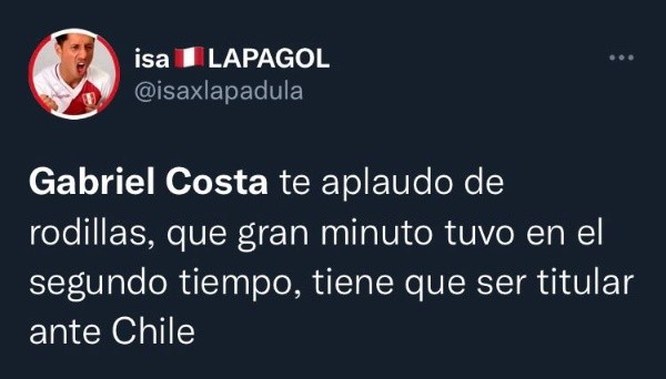 cción peruana piden la titularidad para Gabriel Costa, satisfechos por su cometido en tan solo 30 minutos en cancha.