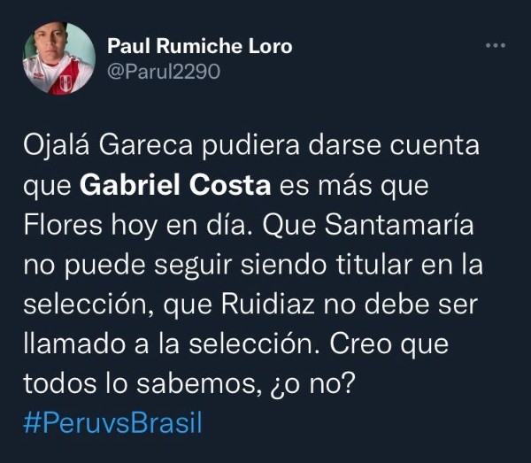 Tan solo 30 minutos le bastaron a Gabriel Costa para convencer a los peruanos. Si bien su selección cayó por 2-0 ante Brasil por las Eliminatorias Sudamericanas para el Mundial de Qatar, el desempeño del colocolino fue destacado en Perú.