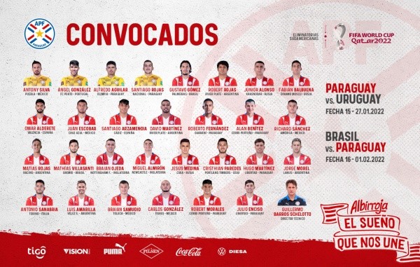 Nómina de Paraguay para la doble jornada de las Eliminatorias Sudamericanas para el Mundial de Qatar 2022