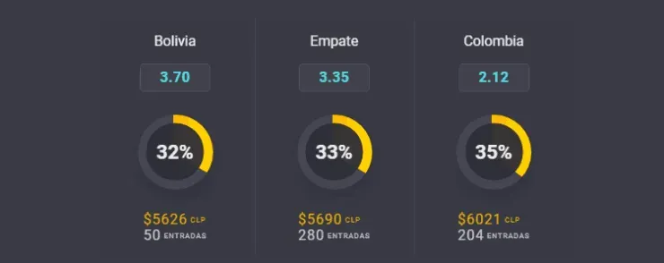 Para el OSO de Coolbet,el gran favorito para ganar este partido que a las 16:00 hrs da inicio a la fecha triple de Eliminatorias Sudamericanas a Qatar 2022 es Colombia, al pagar 2,12 veces lo que juegues, por sobre los 3,70 que paga Bolivia, si piensas que los altiplánicos se quedan con la llave. Ahora, el empate entre ambos paga 3,35 veces lo que apuestes.