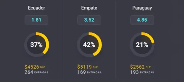 Para el OSO de Coolbet, el favorito para ganar en esta llave que comienza a las 17.00 hrs es Ecuador, que paga 1,81 veces lo que juegues, por sobre los 4,85 que paga Paraguay si piensas que se quedarán con la victoria. Ahora, el empate entre ellos empata 3,52 veces lo que juegues.