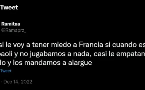 Si bien el rival de La Scaloneta para conseguir su tercer trofeo de esta categoría es el campeón vigente, en las redes sociales existe mucha confianza por lo que puede hacer la Albiceleste en aquel duelo, pactado para el domingo 18 de diciembre a las 12 del día, según el horario de Chile continental. Y eso tiene su raíz en un partido que ambos elencos disputaron en los octavos de final de Rusia 2018.