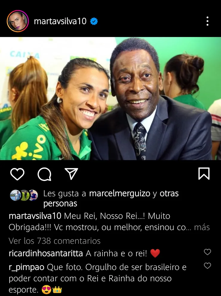 23:30 | La mejor futbolista brasileña de todos los tiempos, Marta Silva, presentó sus respetos al ídolo a través de Instagram.