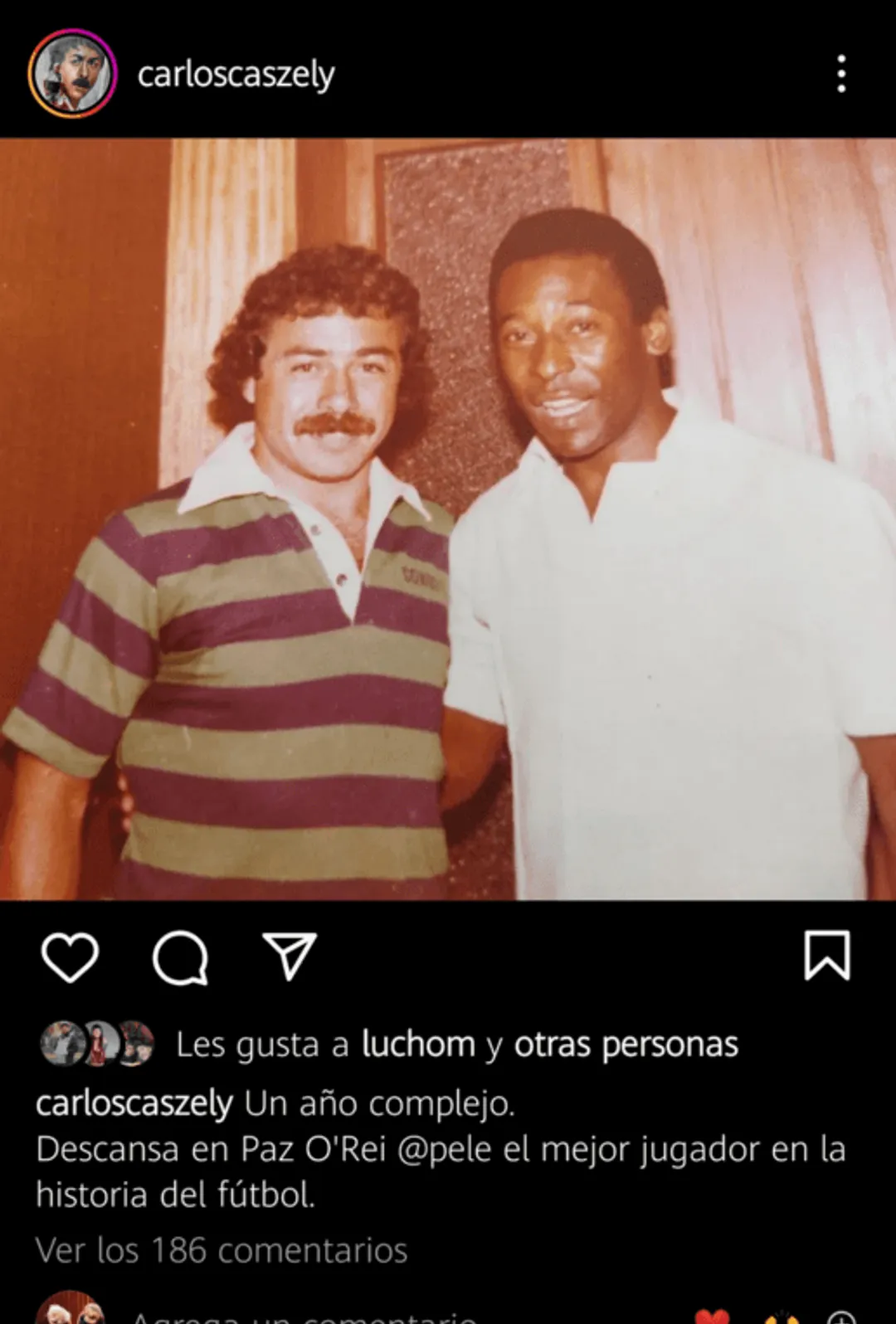 19:30| El alemánFranz Beckenbauer despide a su gran amigo Pelé por sus redes sociales.