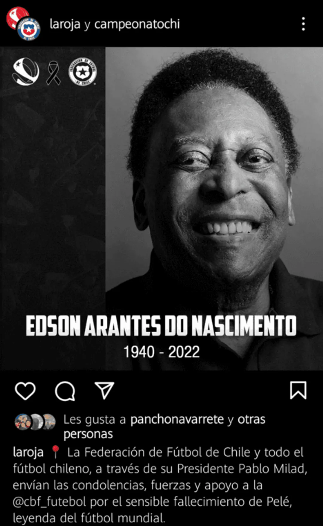 16:38 | El fútbol chileno no queda al margen de la muerte de Pelé y deja sus condolencias. Desde la Roja a Santiago Wanderers, ninguno quiso estar ausente del adiós de O Rei.