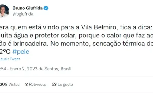 13:00 | Solicitan llevar agua y protector a los visitantes al estadio Urbano Caldeiro de Vila Belmiro, con una sensación términa superior a los 32°C.