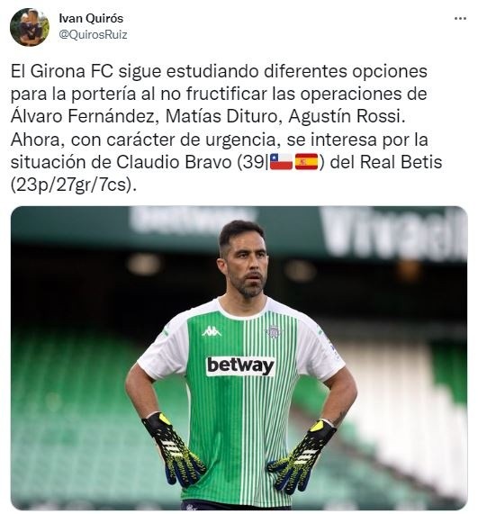 Bravo sería una buena opción para Girona que ha estado en búsqueda activa de un nuevo portero e, inclusive, habían estado tanteado a Matías Dituro desde Universidad Católica además de Agustín Rossi, actualmente en Boca Juniors.