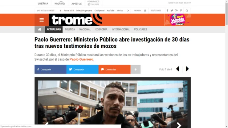 En Perú es el tema del momento. Nuevamente Paolo Guerrero vuelve a clamar su inocencia en el caso de dopaje que forzó su suspensión por varios meses en la víspera del Mundial de Rusia, ese que efectivamente jugó, pero sin continuidad. Un reportaje de la TV del vecino país apunta a la presunta negligencia de trabajadores del Swisshotel de Lima mientras la selección de la banda sangre estaba concentrada allí.