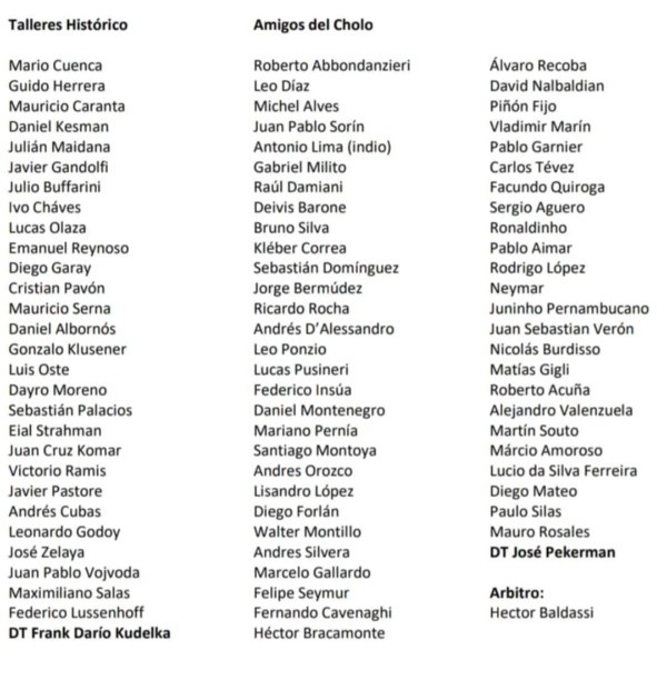 El partido enfrentará al equipo de Talleres histórico, el que será dirigido por el ex entrenador de Universidad de Chile, Frank Kudelka con otro llamado “Amigos del Cholo”, donde estará el mediocampista chileno.