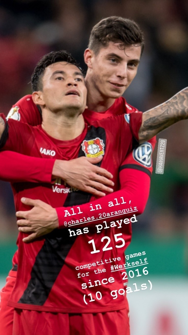 Cabe mencionar que Aránguiz ya ha disputado 125 encuentros defendiendo los colores del Leverkusen, pues se debe sumar sus participaciones en Champions League, Copa de Alemania y otras competiciones oficiales.