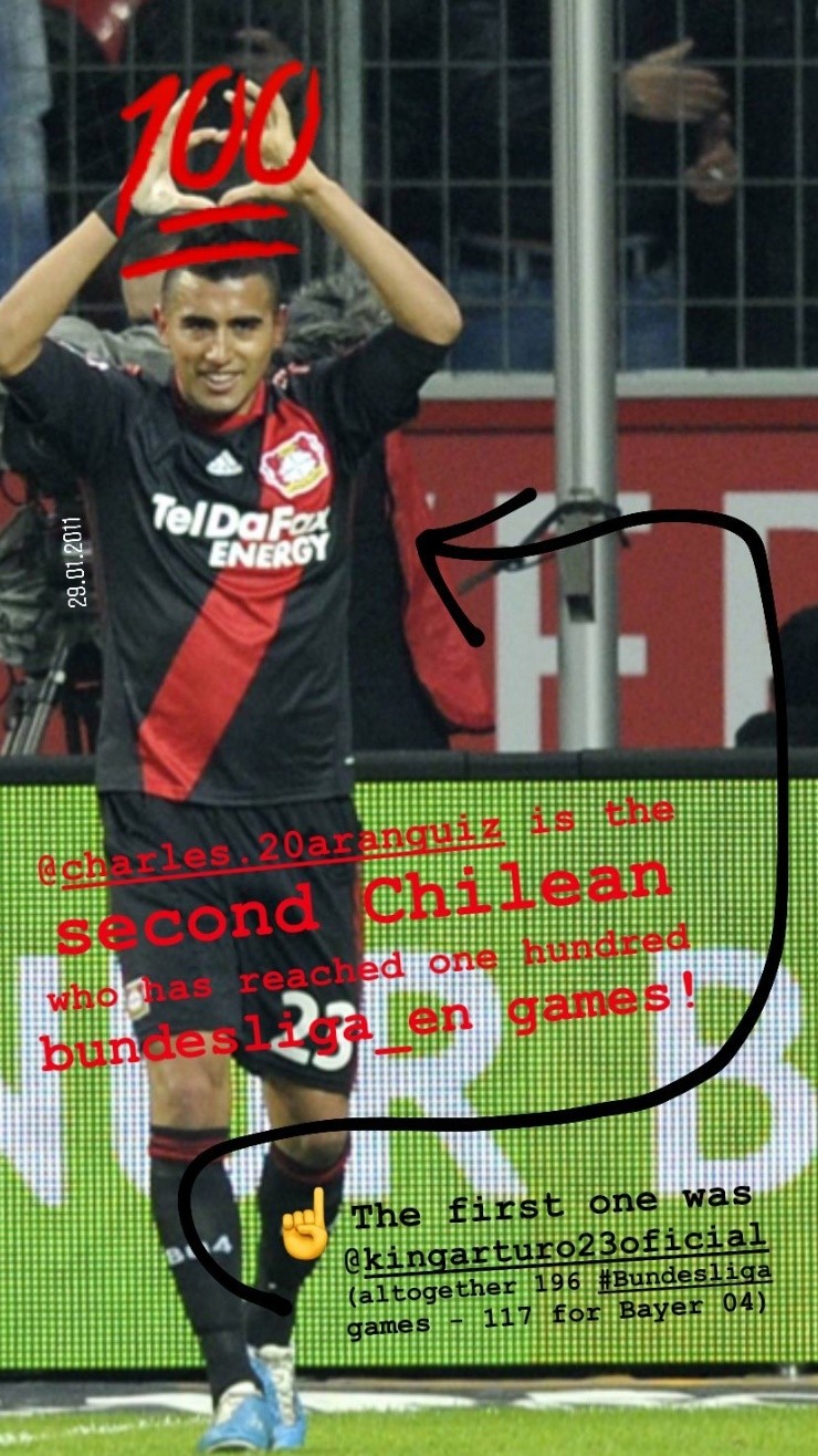 “Felicidades Charles Aránguiz: Ante Unión, el Príncipe cumplió su partido número cien en Bundesliga”, publicó a través de su cuenta de Instagram el equipo alemán, además de una serie de fotografías con el volante chileno como protagonista.
