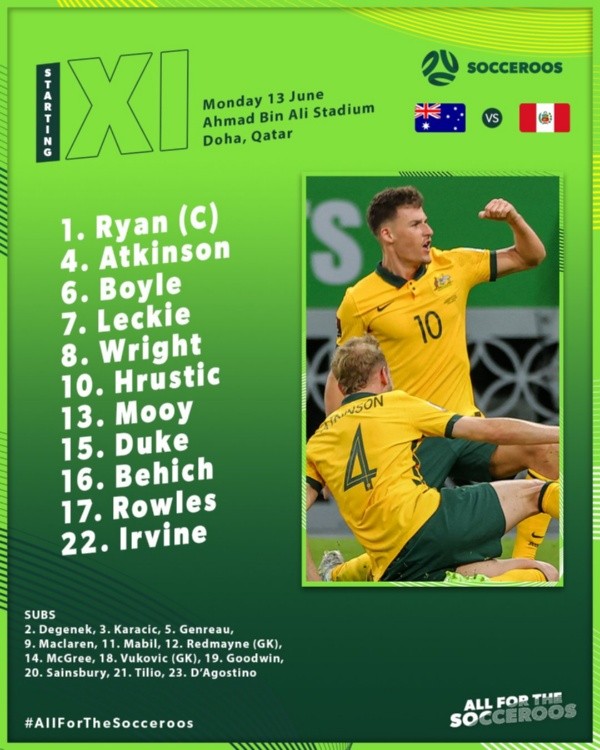 Por su parte, el DT de los oceánicos que juegan en la AFC, Graham Arnold, también confirmó su once titular encabezado por el arquero y capitán de los Socceroos, Mathew Ryan.
