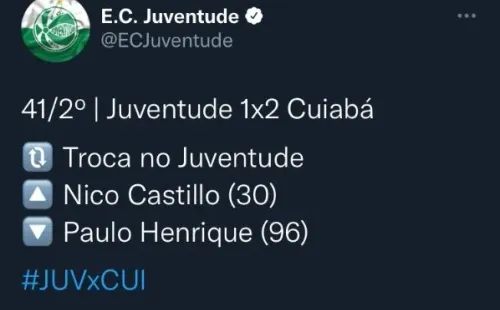 Si bien en esta jornada alcanzó a jugar 11 minutos (por los descuentos dados por el árbitro), Castillo ya había ido a la banca de suplentes en el anterior duelo del Juventude, cuando igualaron 1-1 ante Corinthians.