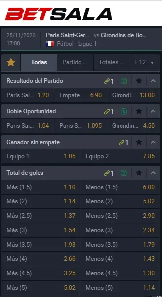 Para Betsala, el favorito para ganar este partido de la Ligue 1 de Francia es PSG, que paga 1.20 veces lo que apuestes, por sobre los 13.00 que paga Bordeaux si piensas que ellos serán los vencedores. Ahora, el empate entre ambos paga 6.90 veces lo que juegues.