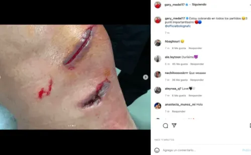 La foto reveló dos terribles cortes en la pierna del defensor chileno, que fiel a su estilo aguerrido, se lo tomó con humor. “Qué semanitas, mamá”, fue la primera frase que utilizó para referirse a las heridas con las que terminó el encuentro.