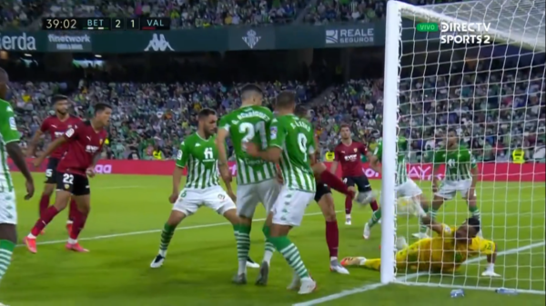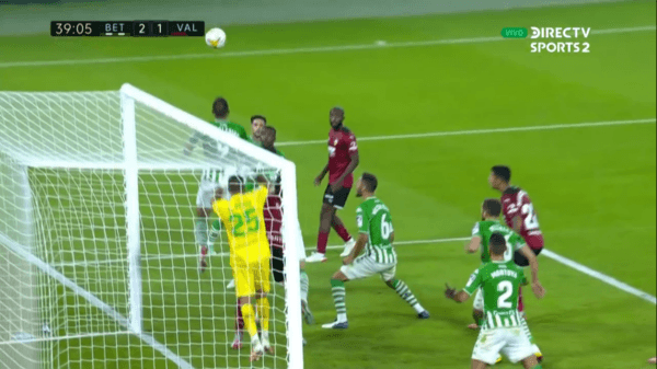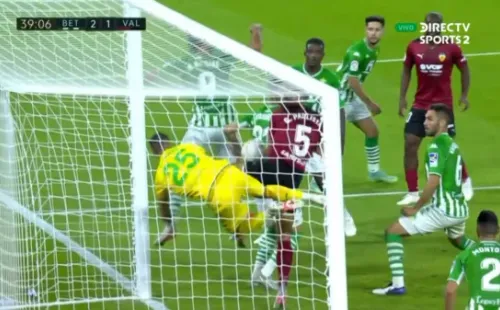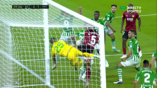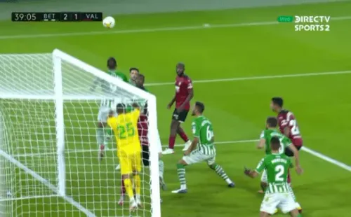 El error de Bravo en el descuento del Valencia contra Real Betis.