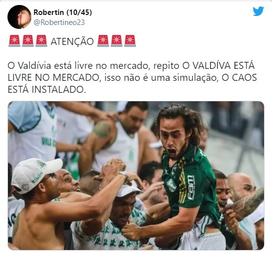 Entre las reacciones en redes sociales, los hinchas han manifestado: “Valdivia libre. Repito: Valdivia está gratis en el mercado, esto no es una simulación, el caos está instalado”. “Valdívia se merece la oportunidad de retirarse en Palmeiras. Un último baile, una última patada en el vacío, un último grito”, añadió otro forofo.