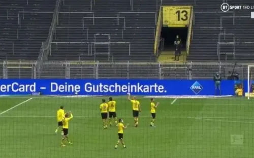 Más allá de los festejos sin contactos físicos, algo que tocó la fibra de los pocos presentes y de los espectadores que seguían el partido a través de Fox Sports, fue el hecho de que una vez terminado el encuentro, todos los jugadores del Dortmund fueron a despedirse de una hinchada que no estaba.
