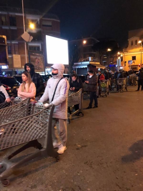 De hecho, ya no es misterio que la Seria A y el fútbol italiano fueron suspendidos. En medio de este escenario, muchos acudieron al comercio para abastecerse de cara a la cuarentena masiva de La Bota.