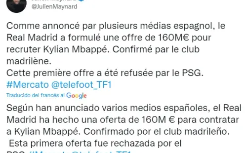 Real Madrid sigue firme en su sueño de conseguir a Kylian Mbappé y a pesar de lo complicada que puede ser la operación, ya el PSG tiene sobre la mesa la primera oferta formal. Medios de comunicación en España como El Chiringuito y Goal se han hecho eco de la información durante este martes.