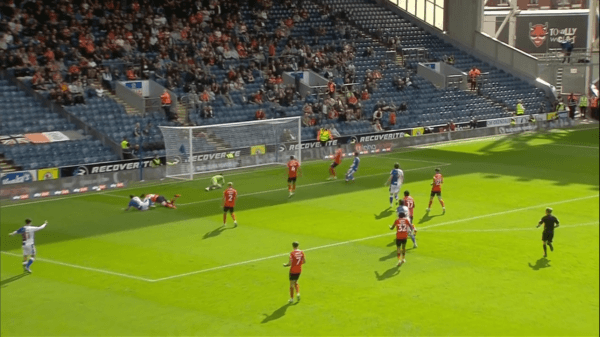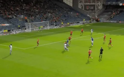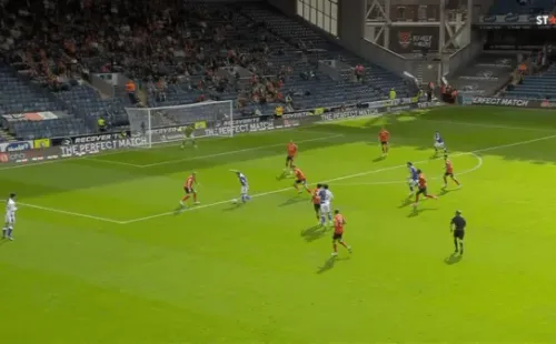 Ben Brereton y la asistencia en el segundo gol del Blackburn Rovers contra Luton Town.