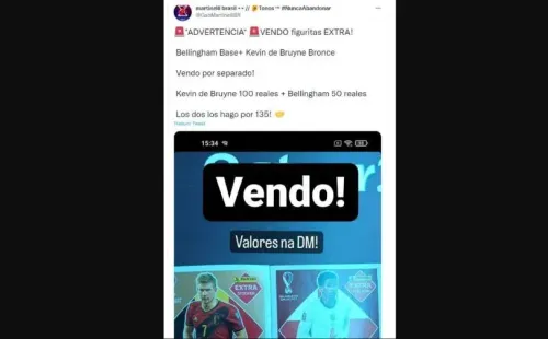 Desde el lanzamiento del álbum de la Copa del Mundo de Qatar 2022, en la web han aparecido varios comerciantes vendiendo láminas. Por ejemplo, un brasileño ofrece en Twitter los stickers de Bellingham Base más Kevin de Bruyne por 135 reales, unos 28 mil pesos chilenos.