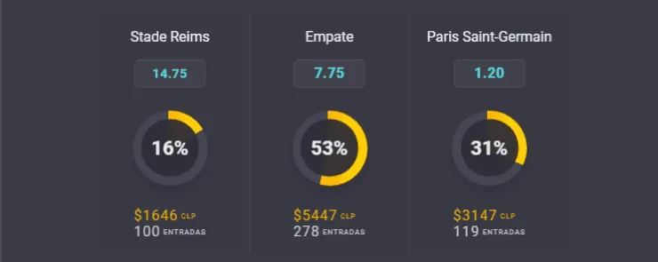 Para el OSO de Coolbet el gran favorito para ganar en este partido de la Ligue 1 es el Paris Saint-Germain, que paga 1,20 veces lo que juegues por sobre los 14,75 que paga Stade de Reims, si piensas que los locales van a dar el golpe esta tarde. Ahora, el empate entre ambos paga 7,75 veces lo que apuestes.