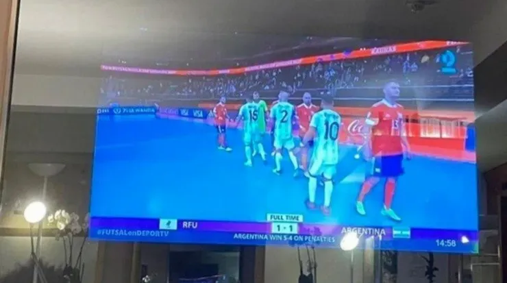 Han sido varios los días en que los seguidores del argentino han quedado con la duda, luego de verse junto a su señora Antonela y sus hijos Mateo y Thiago mirando el Mundial de Futsal, donde Argentina accedió a la final, observado un televisor que parece un espejo.