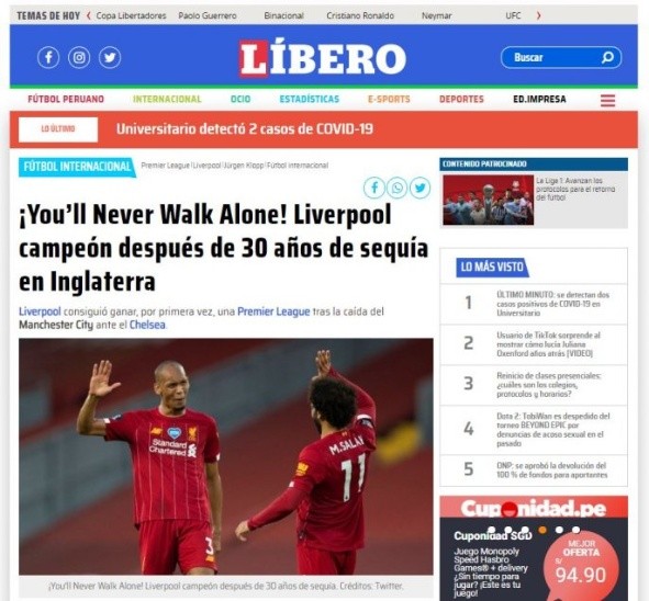 Este título hizo que todos los medios internacionales se volcaran por el campeonato del Liverpool y, como era de esperarse, muchos titularon con el popular “You’ll never walk alone”.