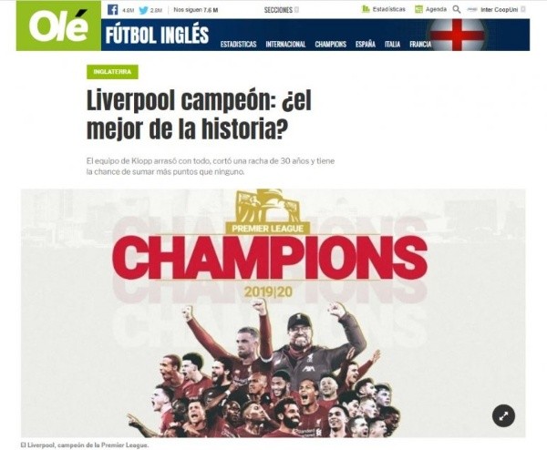 Otros hicieron alusión a si el Liverpool es el mejor campeón en toda la historia de la Premier League, por la gran campaña realizada y por conseguir el título siete fechas antes.