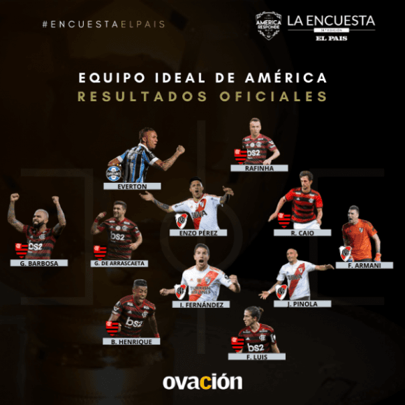 El equipo con los mejores de año tiene 10 jugadores de Flamengo y River Plate, equipos que disputaron la final de la Copa Libertadores con el título para los brasileños. Sólo Gremio pudo meter un jugador dentro del once.