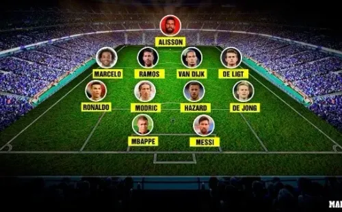 Según reveló Diario Marca, el equipo con los mejores jugadores elegidos porFIFpro ya estádefinido y estaría compuesto porAlisson; De Ligt,Van Dijk, Ramos, Marcelo; De Jong, Hazard, Modric; Ronaldo, Messi y Mbappé.