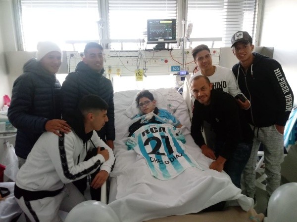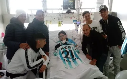 Dicho y hecho, el Chelo llegó hasta el centro de salud donde está el niño y le entregó la remera junto a sus compañeros.