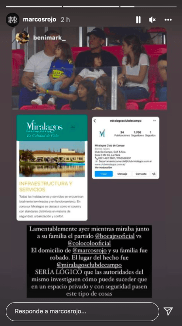 “Lamentablemente ayer mientras miraba junto a su familia el partido Boca Juniors vs. Colo Colo, el domicilio de Marcos Rojo y su familia fue robado”, señala una publicación compartida por Rojo en su cuenta de Instagram.