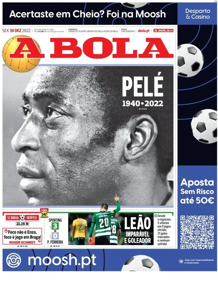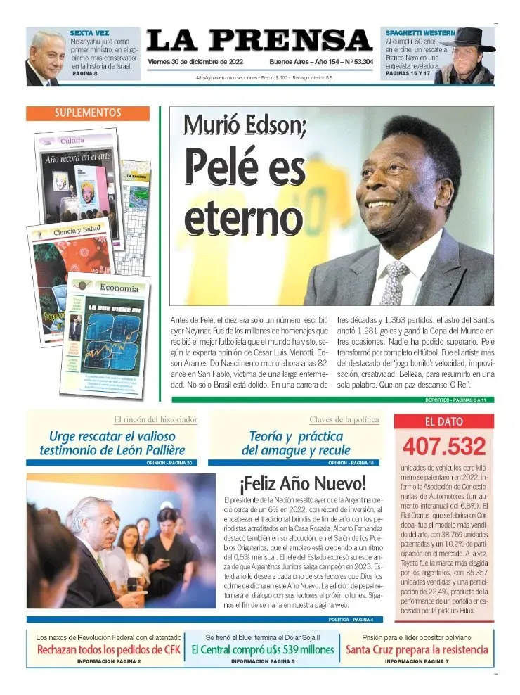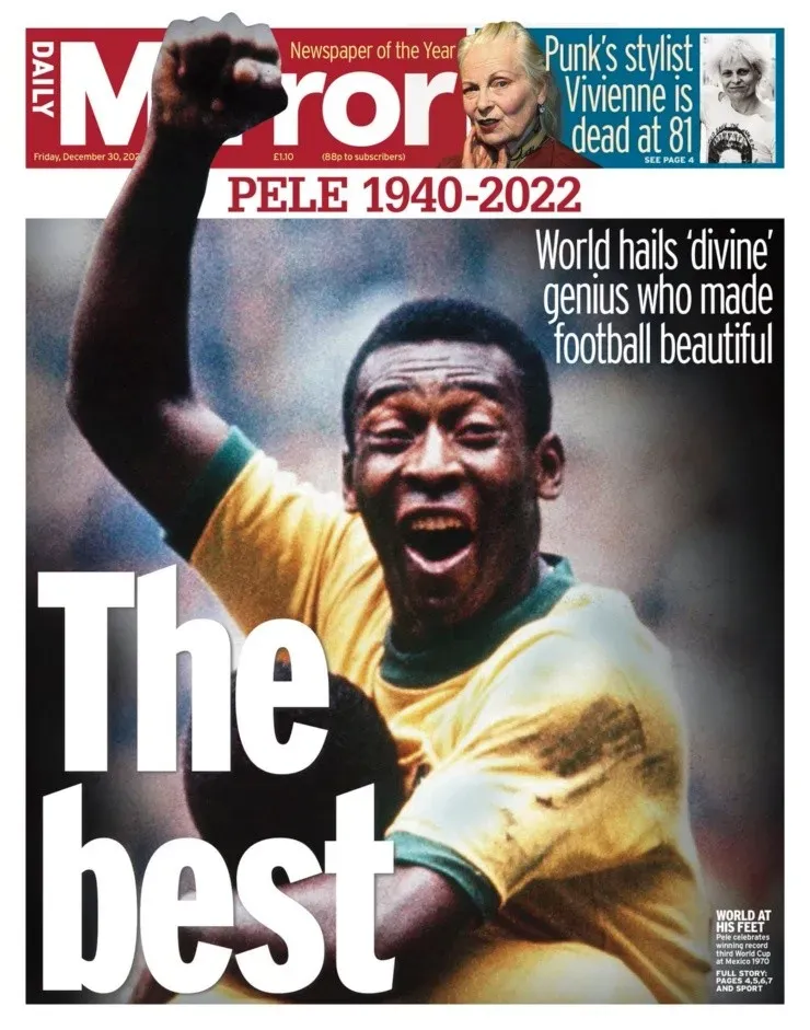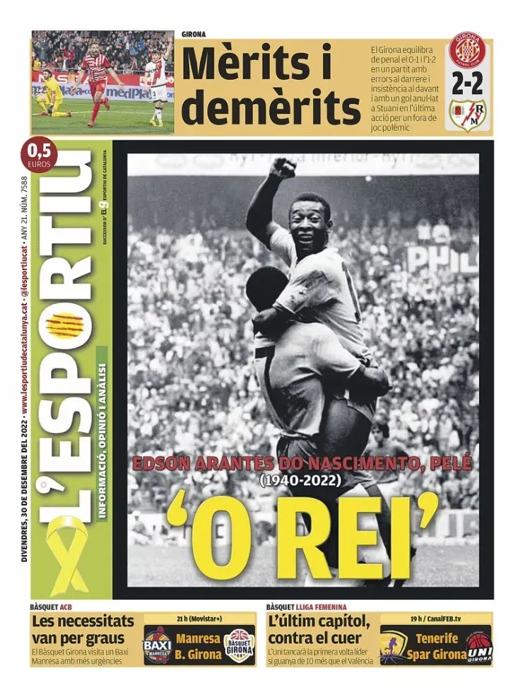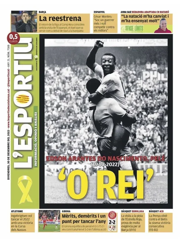 Algunas están realmente bellísimas, como la de AS, que optó por mostrar los pies del futbolista más grande de todos los tiempos con el mensaje ‘O Rei’. O la del medio brasileño O Globo, que optó por llevar cuatro portadas diferentes con icónicas fotos de Pelé para que los lectores eligen cual llevar.