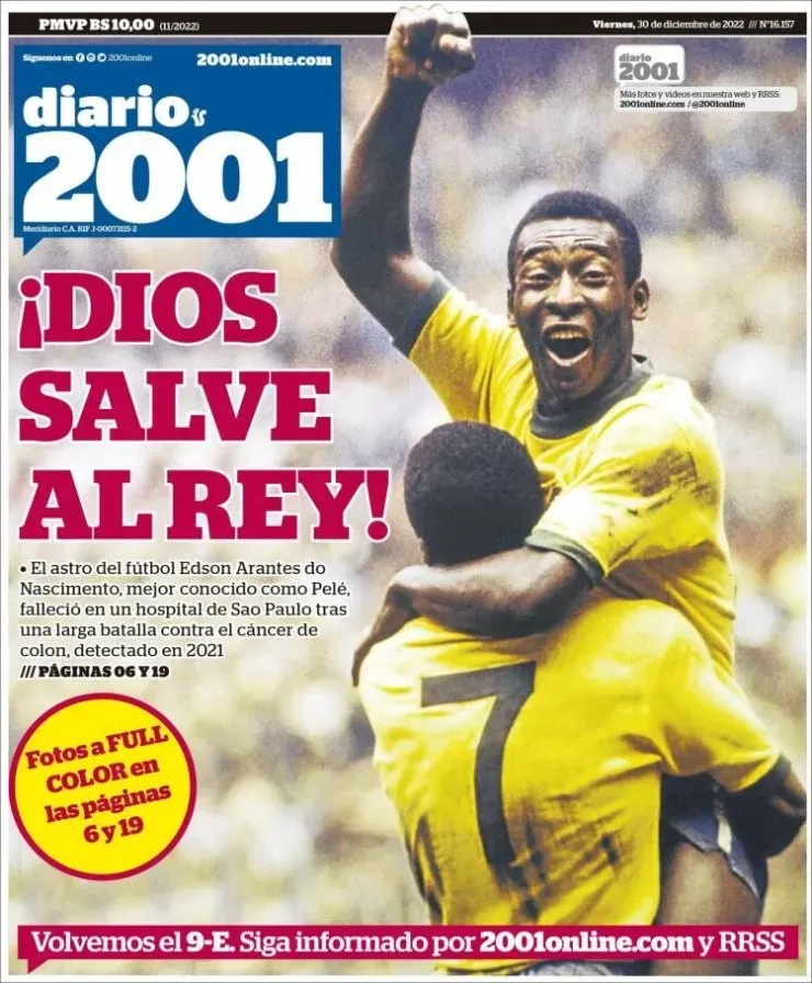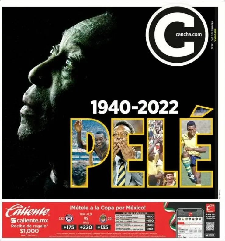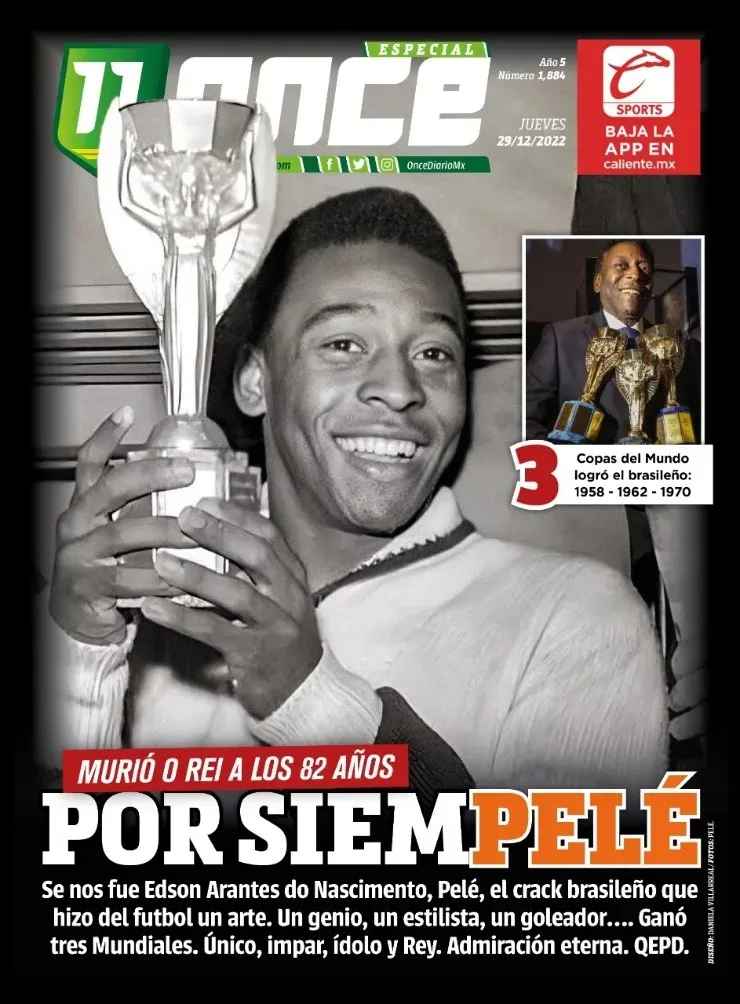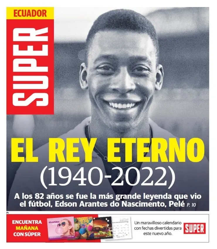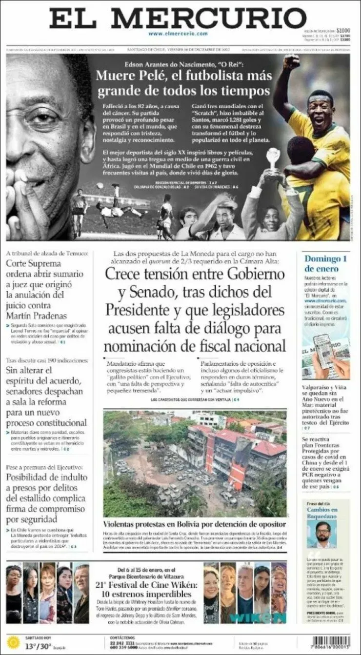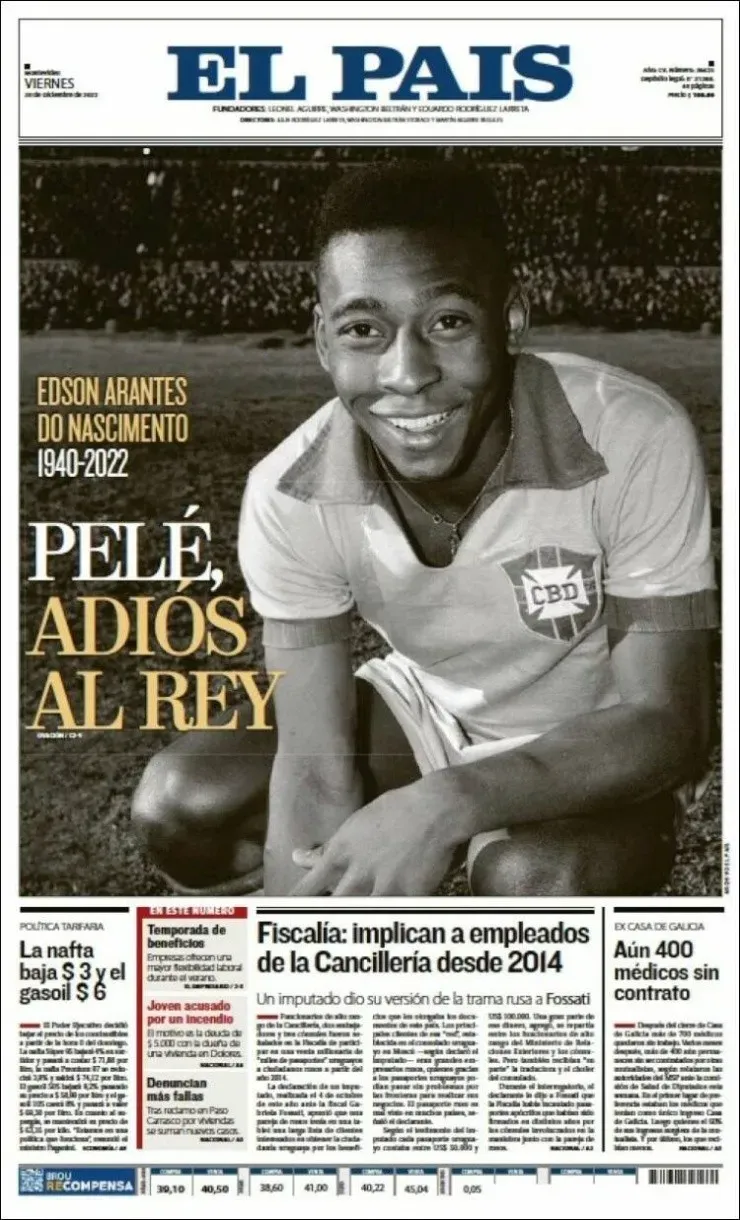 La muerte de O Rei fue la primera plana en países como España, Estados Unidos, Portugal, India, Inglaterra, Francia, Italia, Argentina, Países Bajos, Perú, Senegal, Malta, Ecuador, Ecuador, Colombia, Canadá, por nombrar algunos, y claro, Chile.