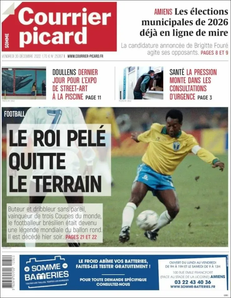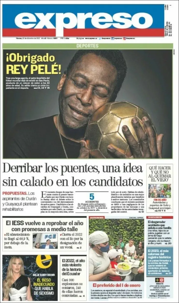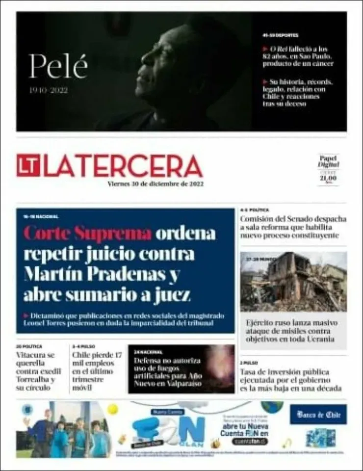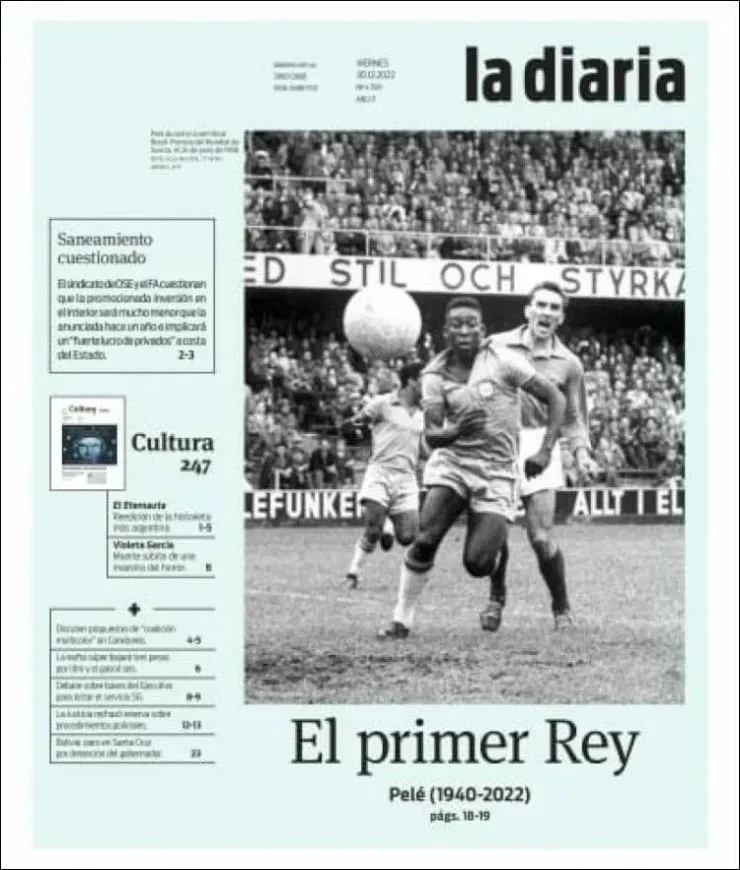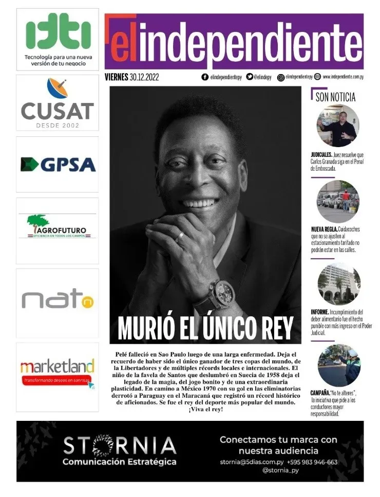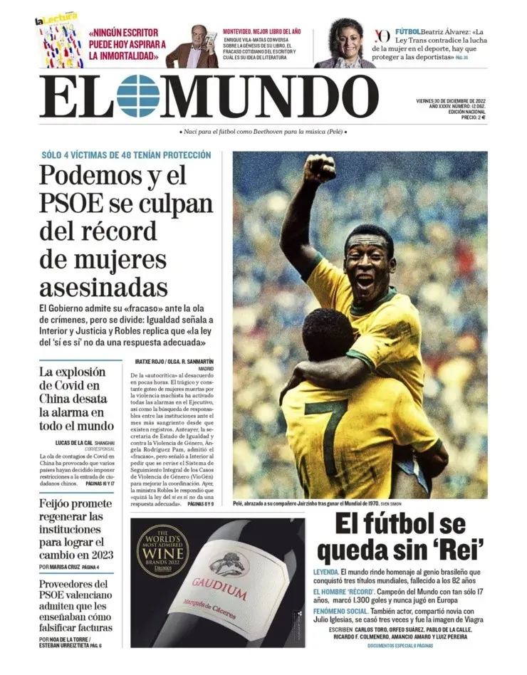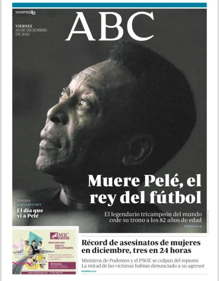 La muerte de O Rei fue la primera plana en países como España, Estados Unidos, Portugal, India, Inglaterra, Francia, Italia, Argentina, Países Bajos, Perú, Senegal, Malta, Ecuador, Ecuador, Colombia, Canadá, por nombrar algunos, y claro, Chile.