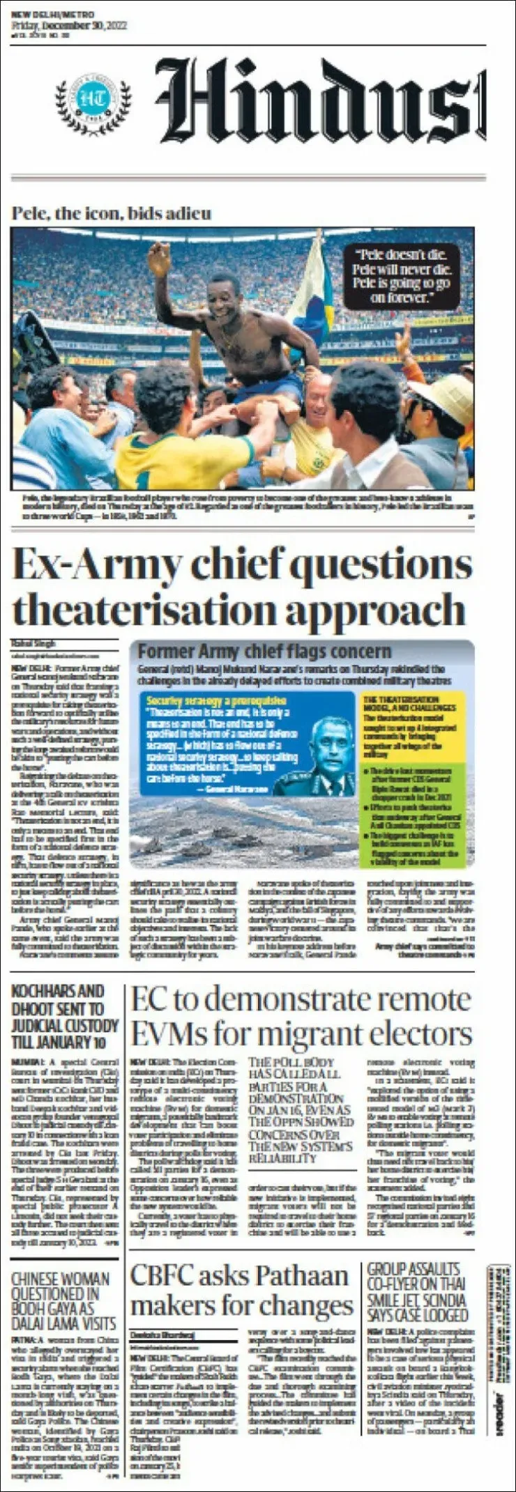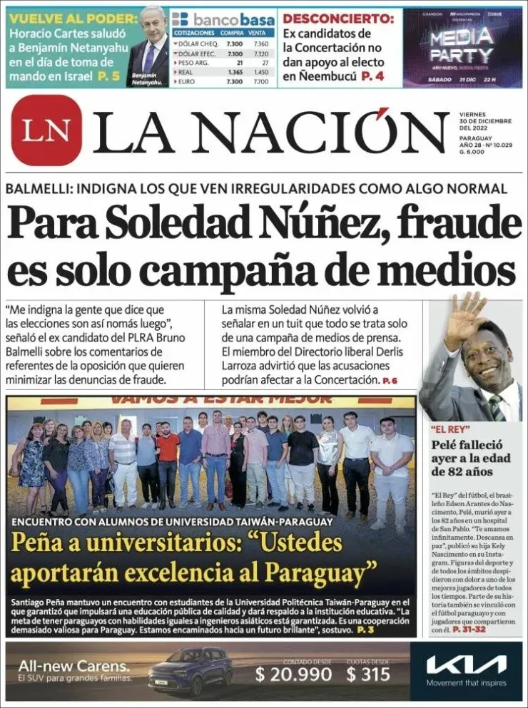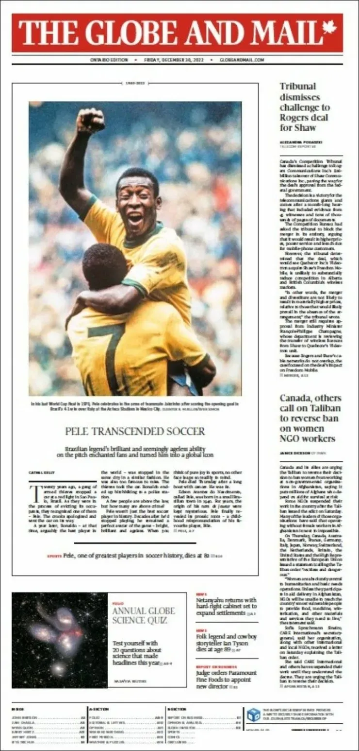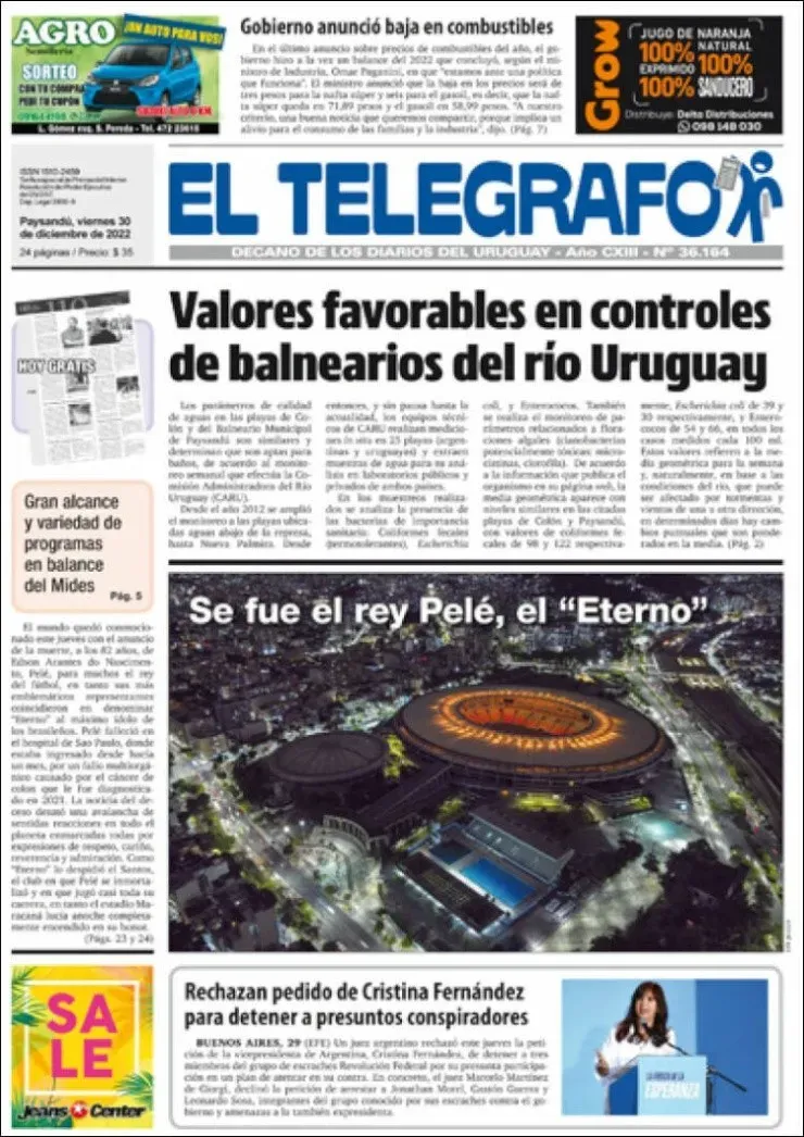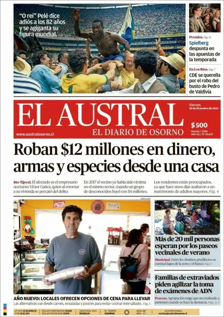 La muerte de O Rei fue la primera plana en países como España, Estados Unidos, Portugal, India, Inglaterra, Francia, Italia, Argentina, Países Bajos, Perú, Senegal, Malta, Ecuador, Ecuador, Colombia, Canadá, por nombrar algunos, y claro, Chile.