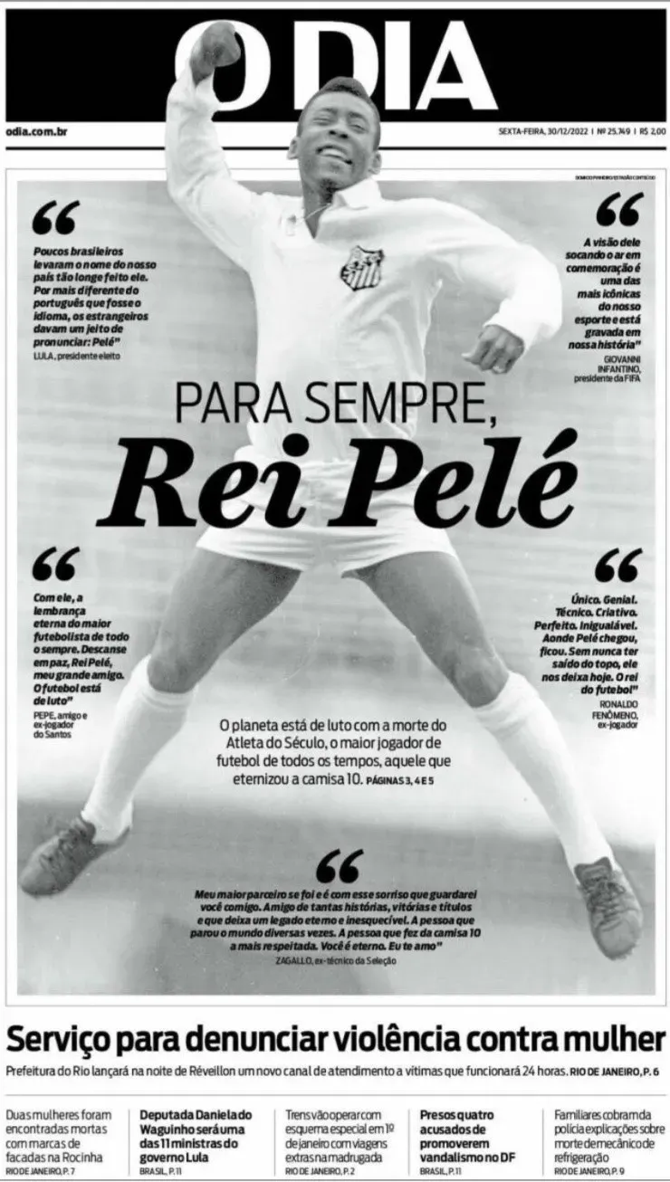Este hecho sin lugar a duda que marcó la pauta noticiosa en estos últimos días del año, quedándose con la portada de los principales diarios no solo de Brasil, sino que de todo el mundo. La figura icónica de Pelé en el deporte más popular de todos obviamente no iba a pasar desapercibida para nadie.