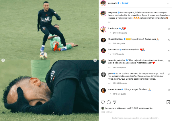 A través de su cuenta de Instagram, el brasileño sacó la voz y se refirió a lo ocurrido. “Voy a recuperarme. Lamentablemente estos contratiempos son parte de la vida de un deportista“, lanzó.