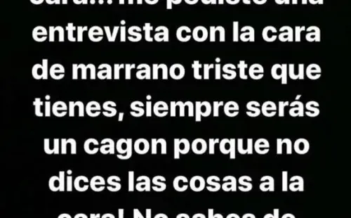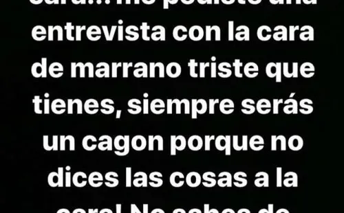 “Cuando fui a tu canal, no fuiste capaz de decirme nada a la cara. Me pediste una entrevista con la cara de marrano triste que tienes. Siempre serás un cagón porque no dices las cosas a la cara”, agregó en su cuenta oficial.